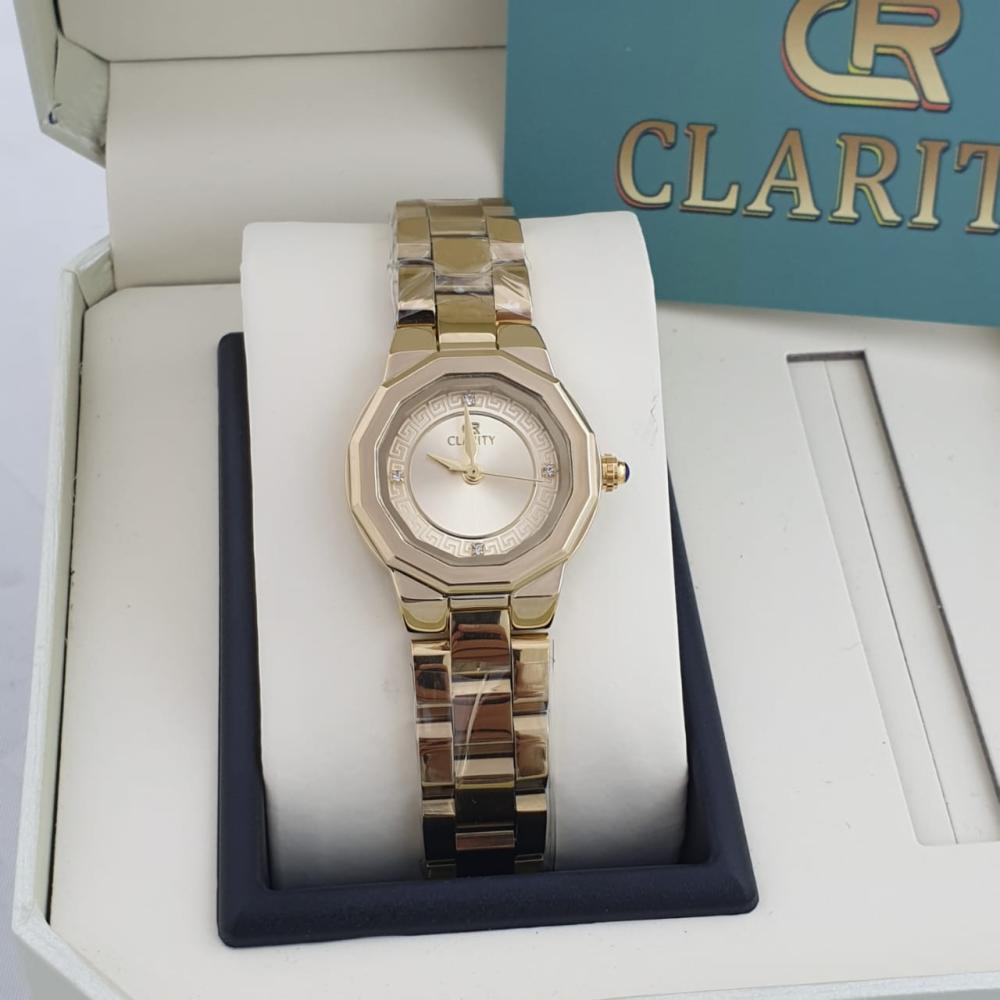 - تمتاز ساعة ذهبية نسائية Clarity بالتصميم الرقيق الذي يجمع بين الألوان الجميلة والجمال في الوقت نفسه