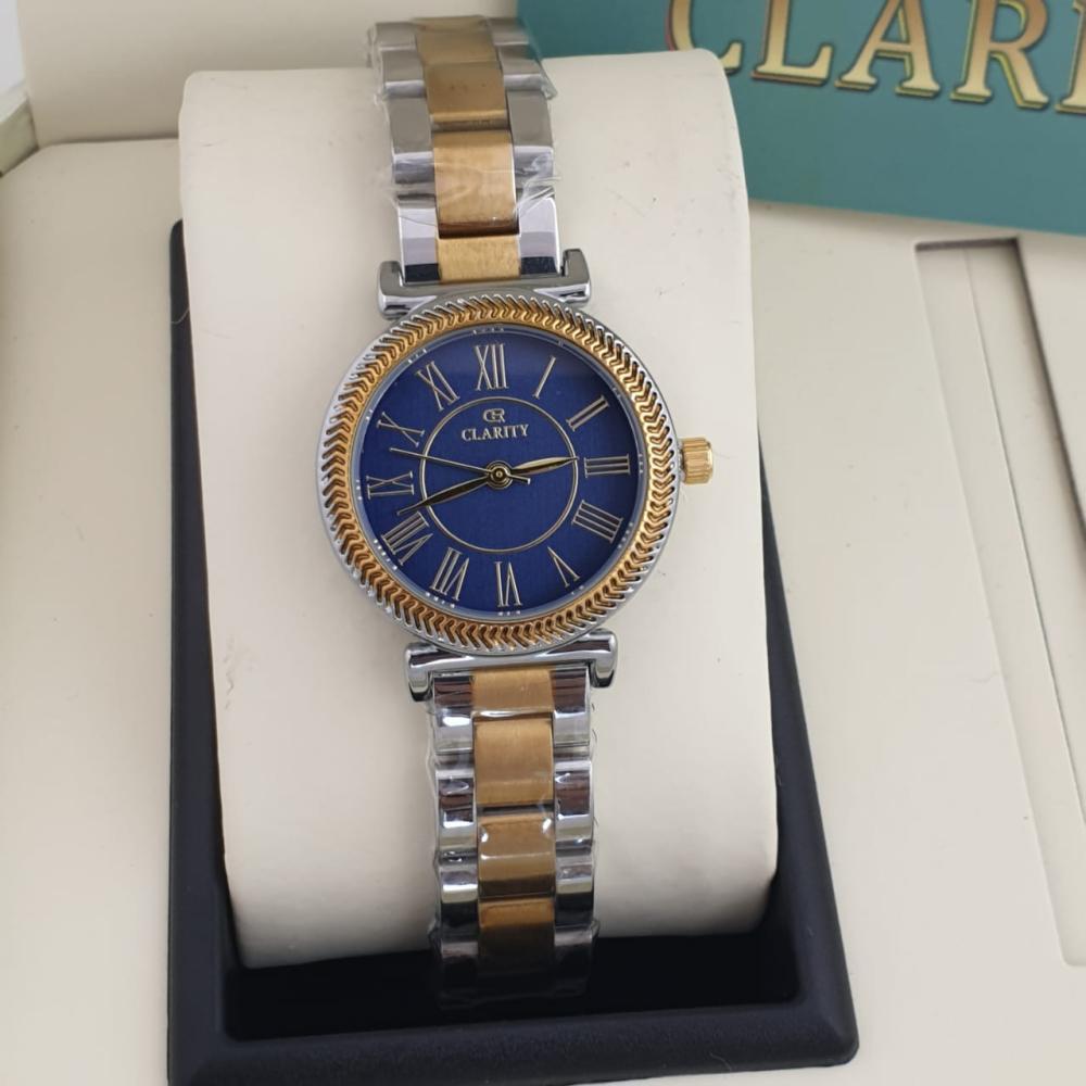 • ساعة نسائية كليرتى Clarity ذات لون مميز من الستيل الذهبي والفضي الخالص، تناسب كل ألوان ملابسك المميزة.