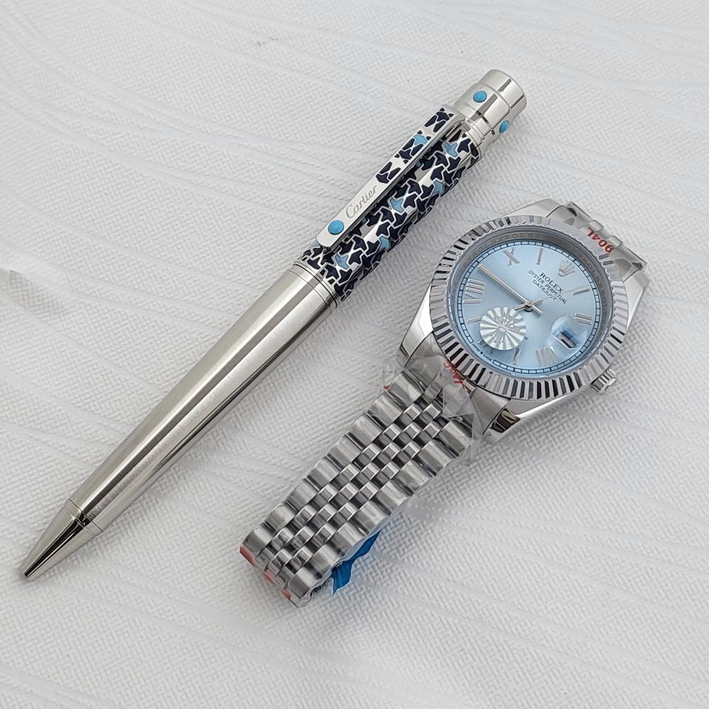 طقم ساعة رولكس مع قلم كارتير سانتوس
